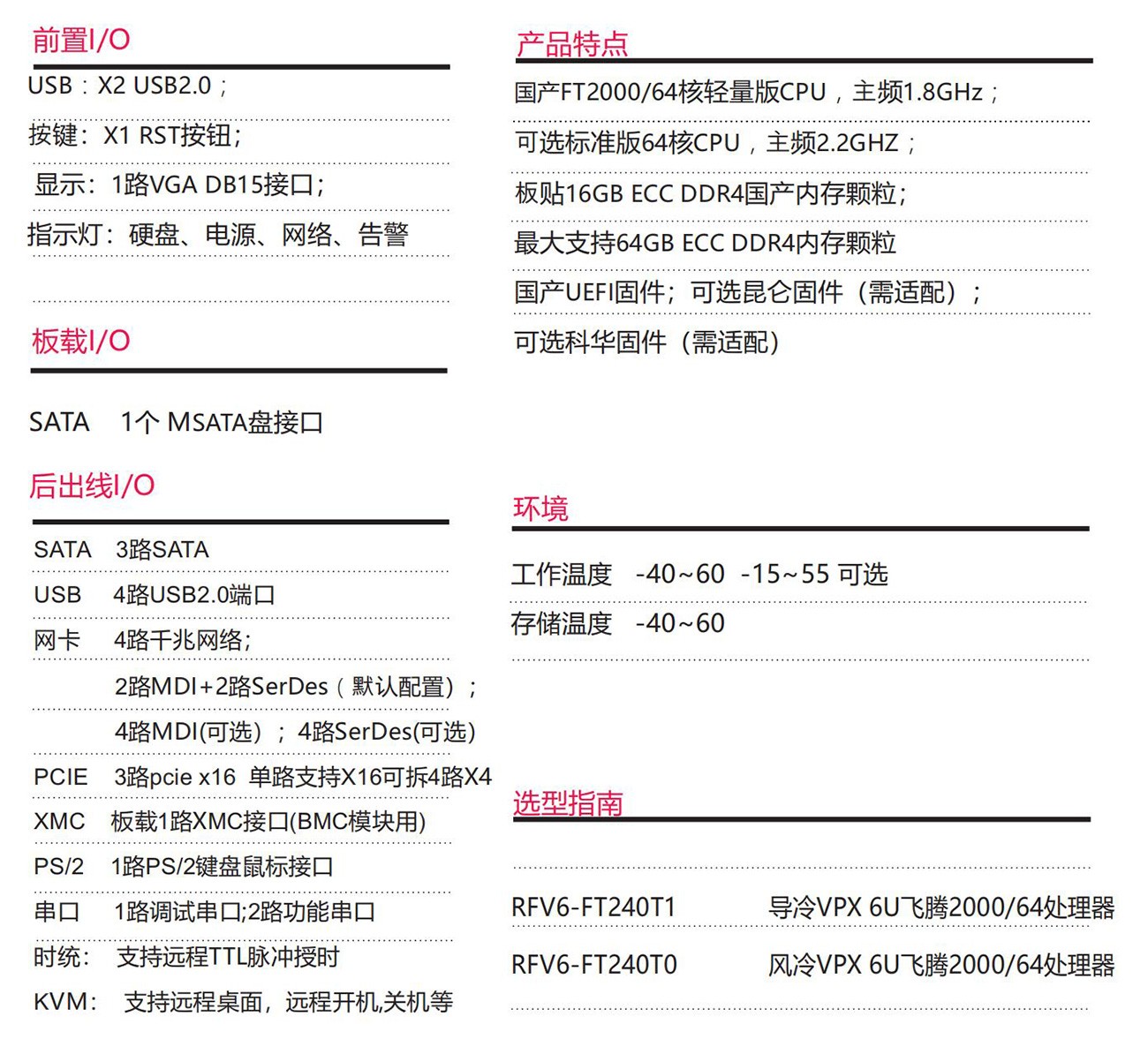 采用國產飛騰處理器遵從 VITA65 規范支持貼裝不同規格 FT2000/64 CPU 最大支持64GB ECC DDR4內存4路千兆 以太網絡支持TTL脈沖時統。具備豐富的外圍接口;設計了 高效的散熱系統,可顯著提高處理器的浮點運算性能,以 太網、PCIe、支持高帶寬數據傳輸,滿足視頻采集與處理、雷達和聲吶等應用對高速數據傳輸的要求。滿足無人機、雷達、水面艦艇等軍工領域。
